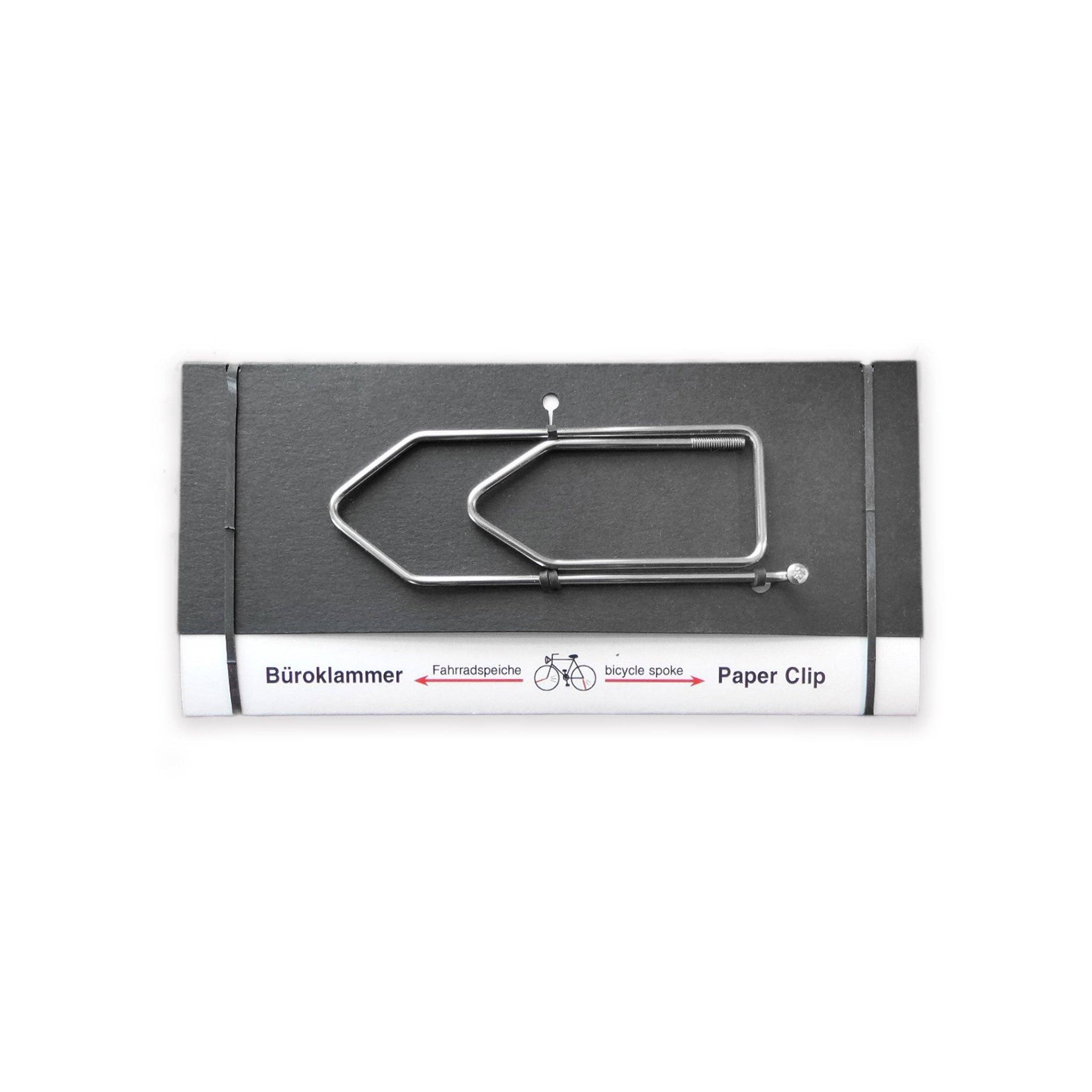This high quality steel and perfectly designed book mark, paper, or money clip is made of a recycled bicycle spoke. L:3.5” x W:1.3” Made in: Switzerland Designer: Brigitta and Benedikt Martig-Imhof